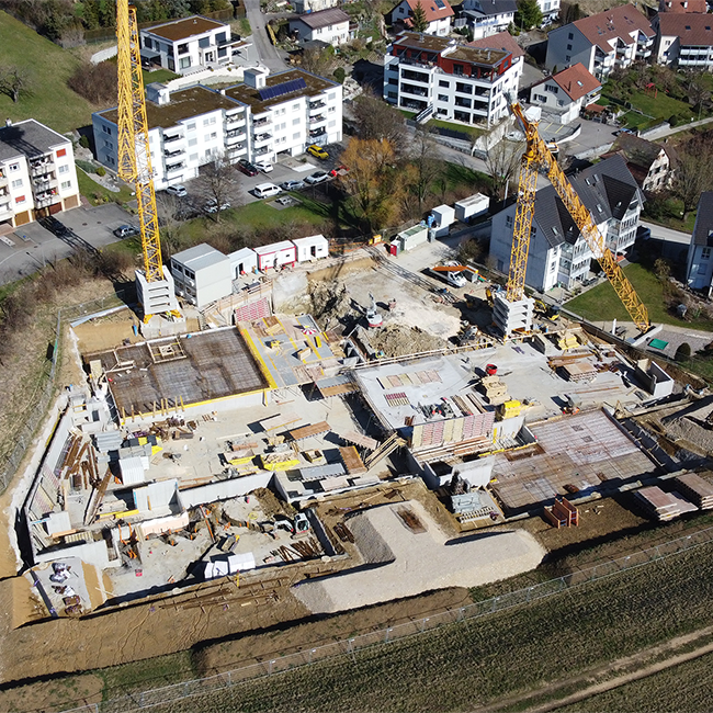 Nach den intensiven und herausfordernden Arbeiten für die Baugrube, Hangsicherung und Pfahlfundation im letzten Herbst, wächst das Projekt seit Jahresbeginn sichtbar und rasant in die Höhe.