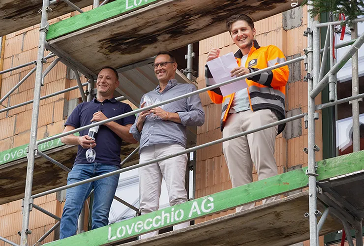 Der Rohbau an der Frobenstrasse ist abgeschlossen, was gestern traditionsgemäss mit einem Richtfest gefeiert wurde. Dem Baumeister gebührte die Ehre das Richtfest zu eröffnen und alle Anwesenden willkommen zu heissen.
